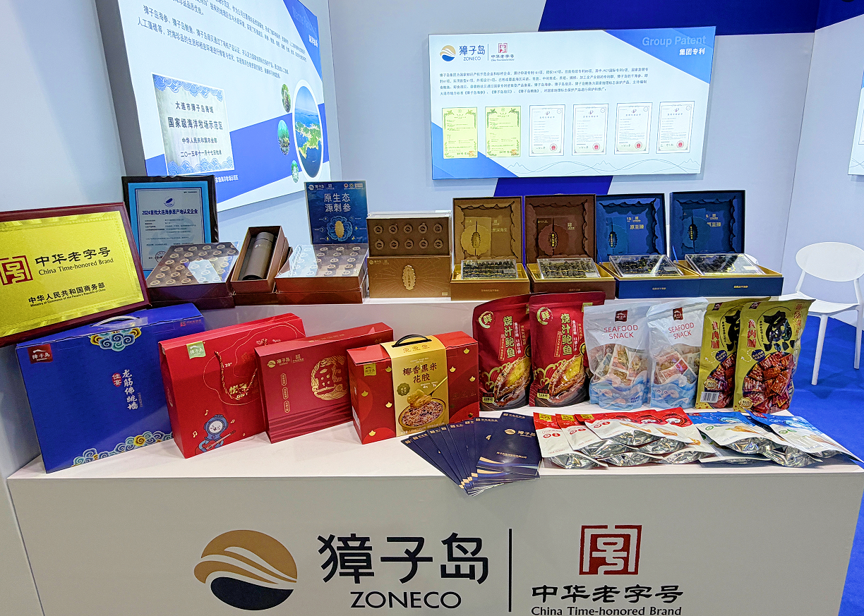 展会期间,獐子岛集团重点展出了来自北纬39°原产地的刺参、海味休闲零食等系列产品,其中獐子岛的干海参、即食鲍鱼、即食扇贝、蒜蓉粉丝贝通过国家专利密集型产品备案,凭借创新实力与品质保障,吸引了众多客商现场品鉴并开展合作洽谈。