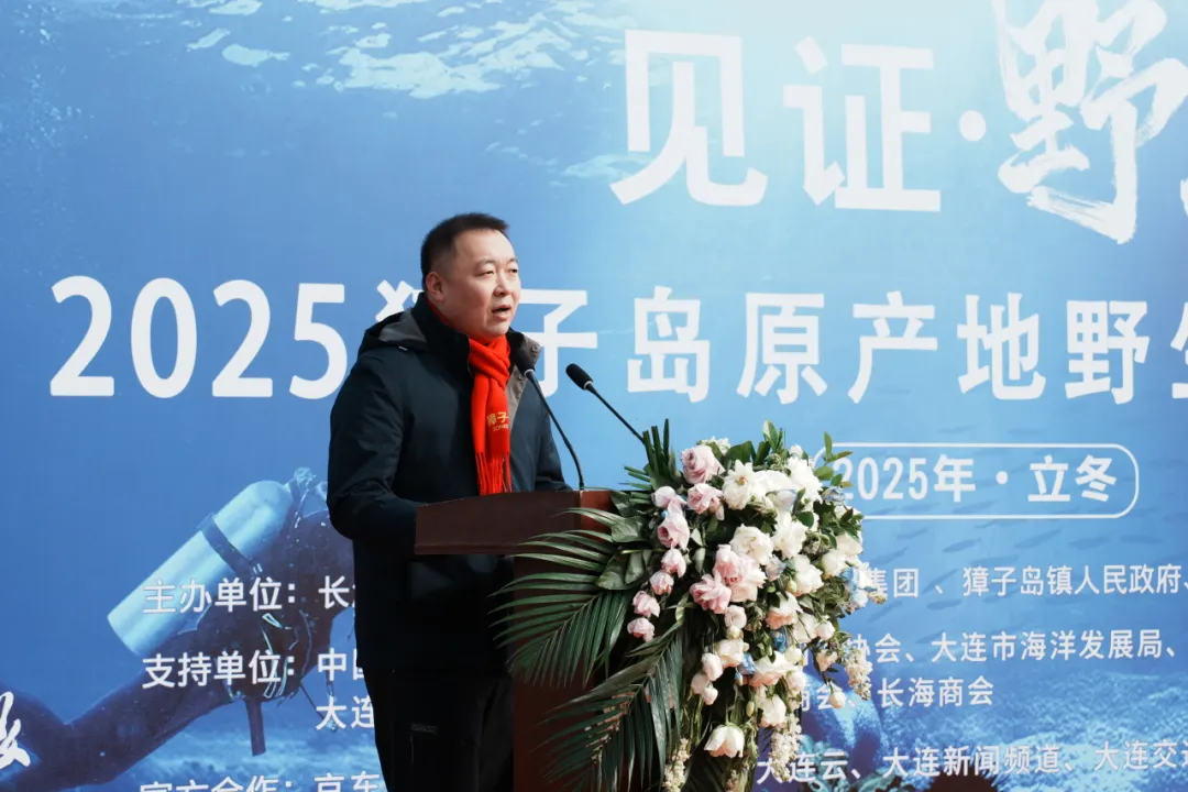 大连獐子岛海洋发展集团总经理张昱在致辞中对远道而来的嘉宾致以最热烈的欢迎,对长期关心支持獐子岛集团发展的各界朋友表达诚挚谢意。他强调,獐子岛集团始终秉持“顺应自然、敬畏海洋”的核心理念,十三载薪火相传,坚持冬捕传统,彰显对野生海参卓越品质的不懈追求和对海洋生态保护的高度责任感。集团积极响应国家海洋强国战略,以“打造卓越海洋经济领军品牌”为战略定位,持续聚焦海洋主业,推动产业优化升级。