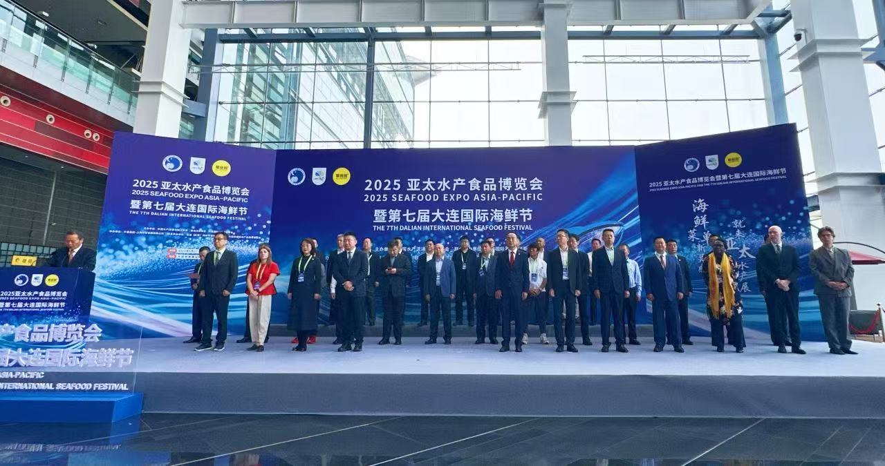 5月27日,由中国水产流通与加工协会、大连国际海鲜节组委会联合主办的2025亚太水产食品博览会暨第七届大连国际海鲜节在大连开幕。本次博览会的成功举办,对于打造中国乃至亚太地区水产行业“一站式采购”服务平台,促进亚太地区国家渔业现代化发展和水产品多边贸易互利互惠合作具有重要意义。中国水产流通与加工协会会长崔和,大连市人民政府副市长周振雷,大连市政协副主席李延锋等领导出席开幕式活动。獐子岛集团副总裁姜大为应邀参加开幕式,并陪同与会嘉宾莅临獐子岛集团展位参观指导。