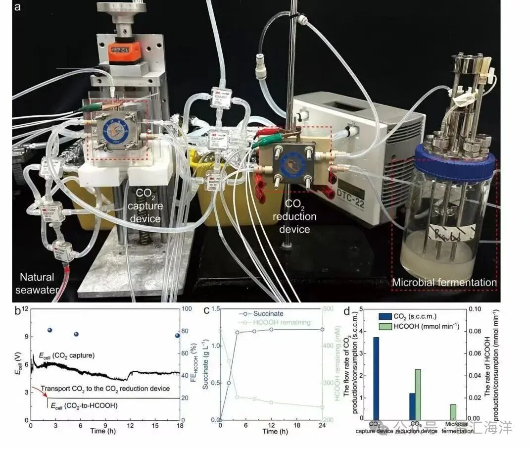 该系统可捕集天然海水中的二氧化碳,并转化为可直接进入生物制造的中间体,再进一步升级为多类高价值化学品与材料。该研究以可降解塑料单体为示范案例,有望为燃料、医药与食品配料等更广谱产品提供生物制造平台。
