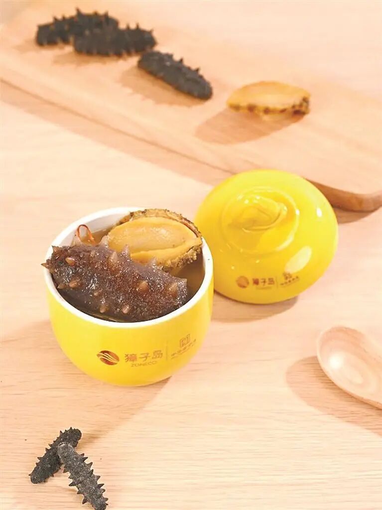 海参佛跳墙将大连海参与鲍鱼、花胶、瑶柱等高端食材搭配,经慢火熬煮后封装,成为加热即享的滋补大餐;小米海参则专注滋补老人和孩子,以养胃的小米粥为基底,搭配切块海参,清淡鲜香。