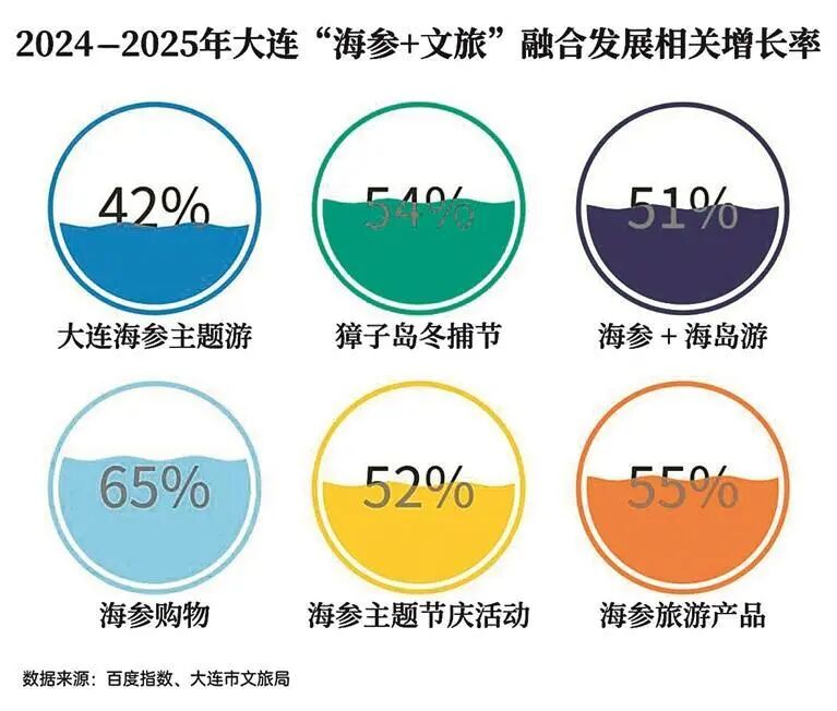 以冬捕IP为契机,大连“海参+文旅”融合业态呈现多点爆发的增长态势。从观捕到赏景,从品鉴到购物,海参将单一的旅游场景拓展为“体验+消费”的复合型链条,海洋资源正转化为实实在在的经济增量。