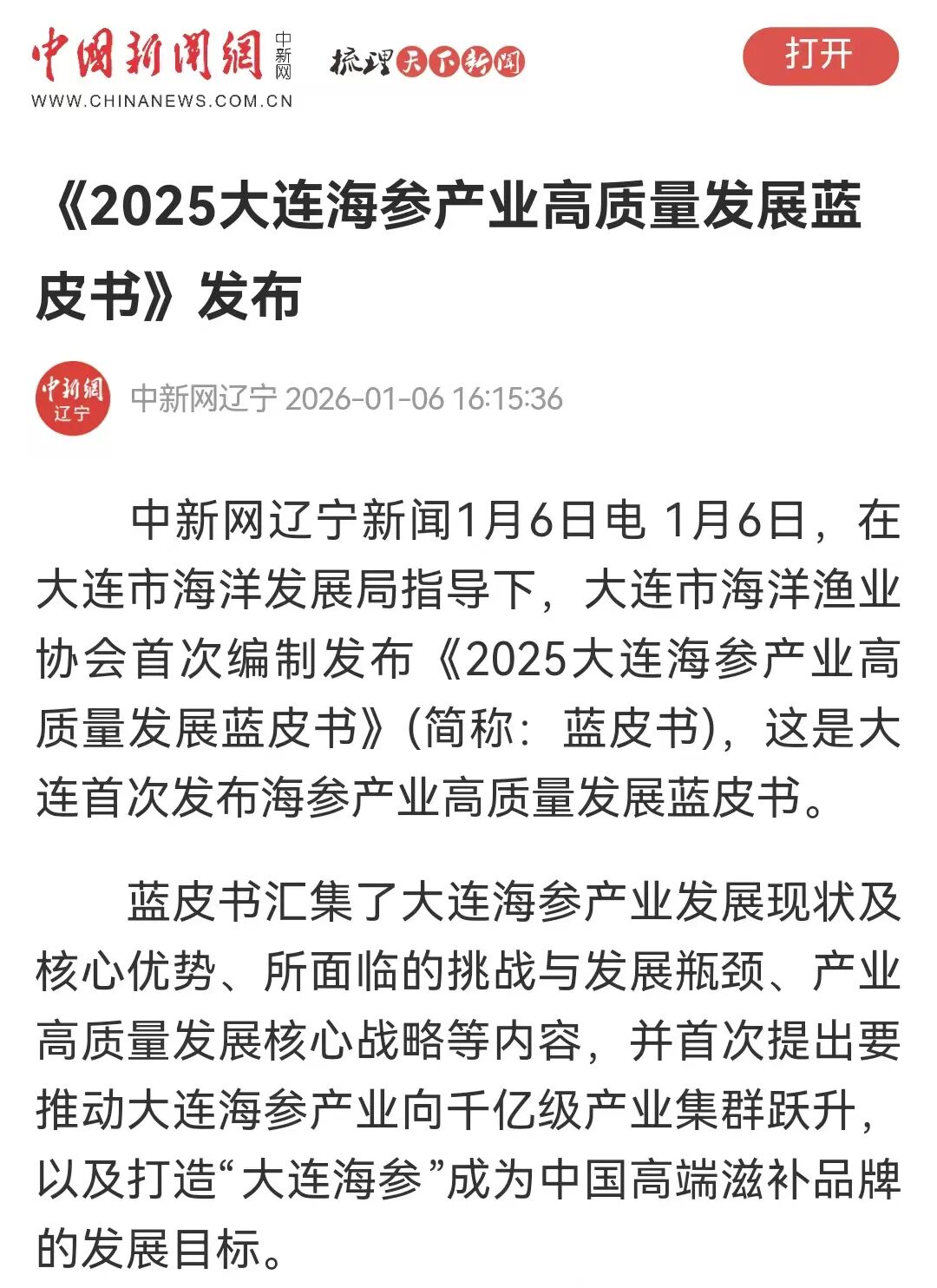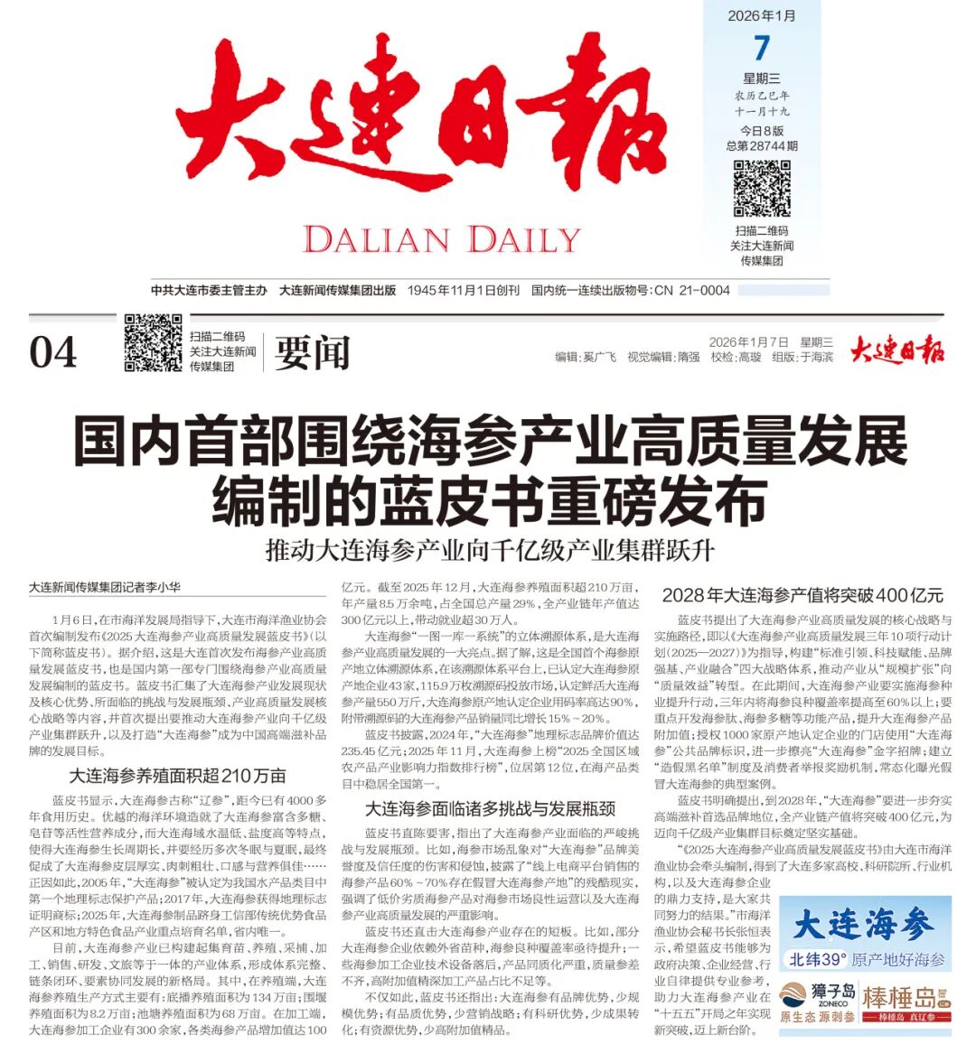 2025年大连海参产业以标准溯源双强、科技品牌双优、绿色效益双增为核心成效,初步形成高质量发展新格局。