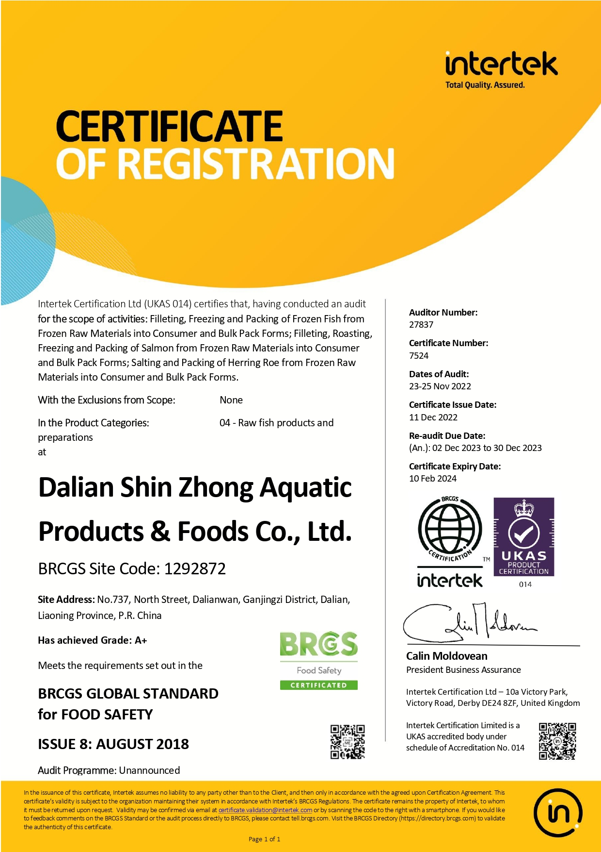 Dalian Shinzhong Aquatic ProductS&Foods Co., Ltd.